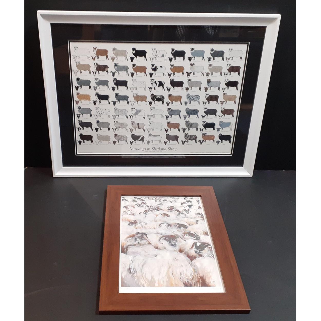 A print of MARKINGS IN SHETLAND SHEEP from the SSBG Colour Census frame size 78 x 60cm approx and also ROUND UP mixed media by C VEGA 49 x 39cm approx