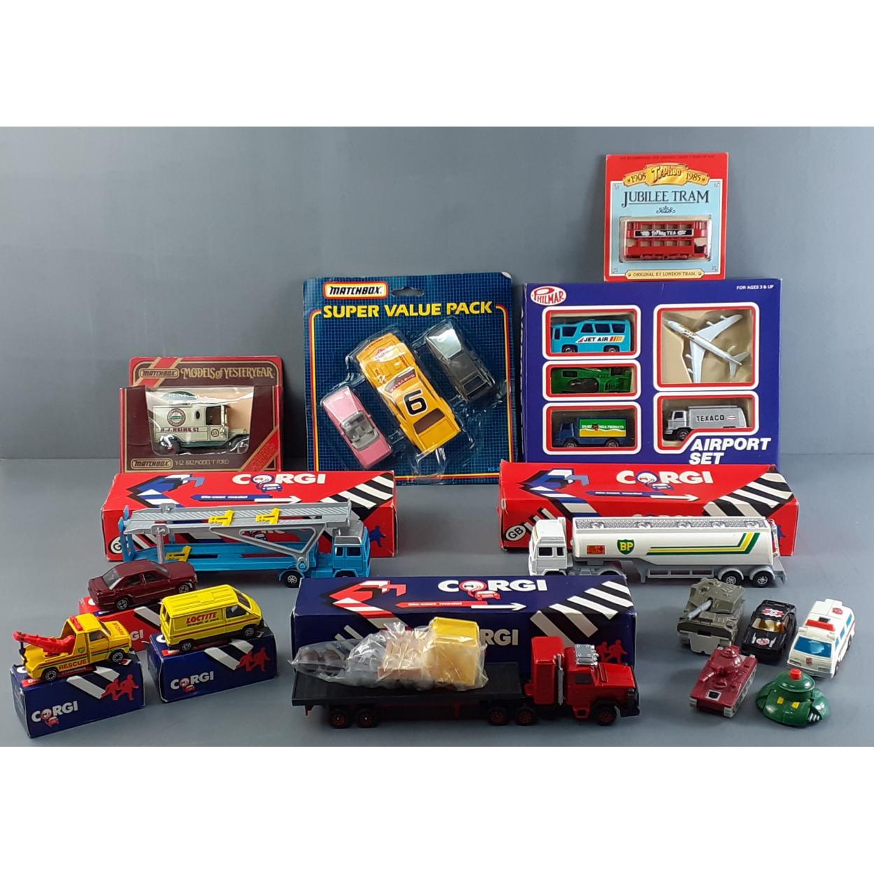 A small lot of good diecast models. MATCHBOX set and CORGIS in boxes etc.