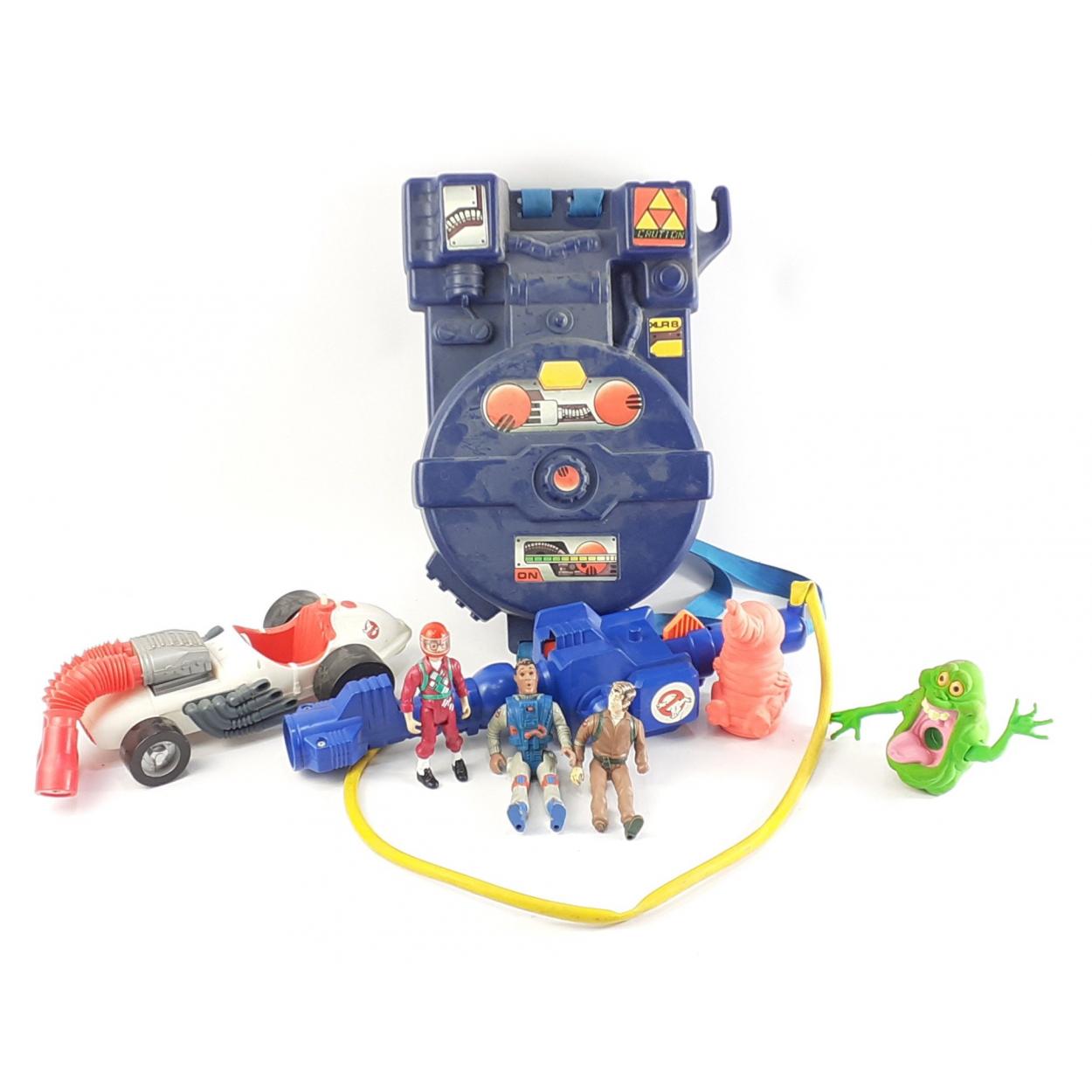 A collection of GHOST BUSTER toys to include the ghost buggy, back pack, 2 small monsters
