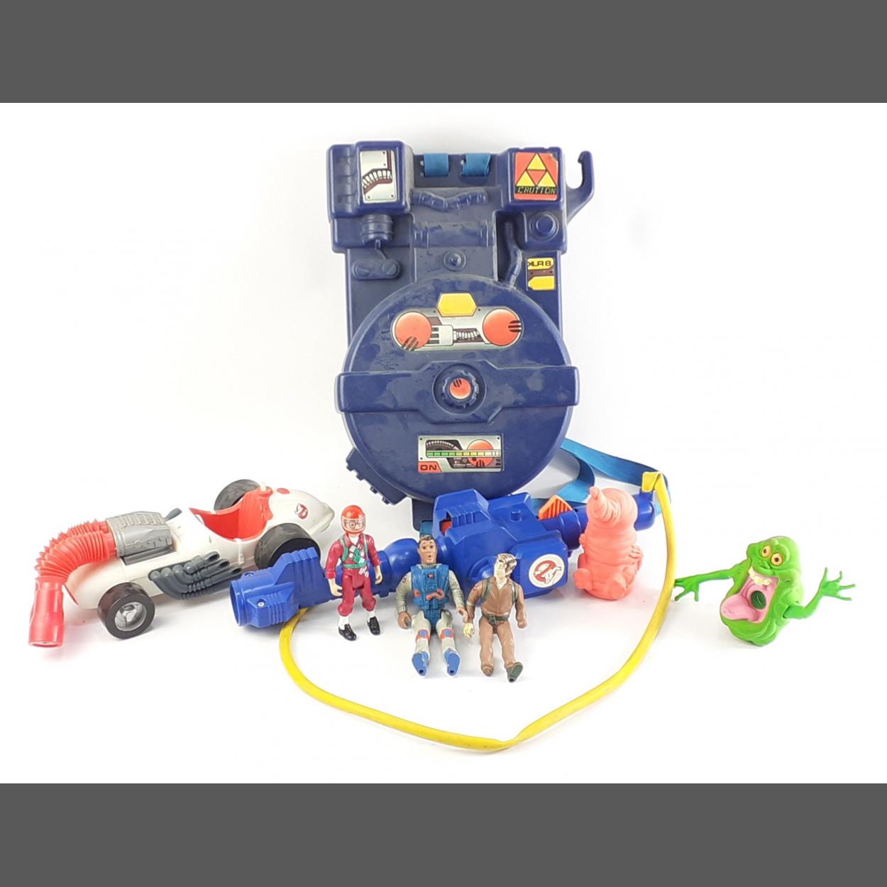 A collection of GHOST BUSTER toys to include the ghost buggy, back pack, 2 small monsters