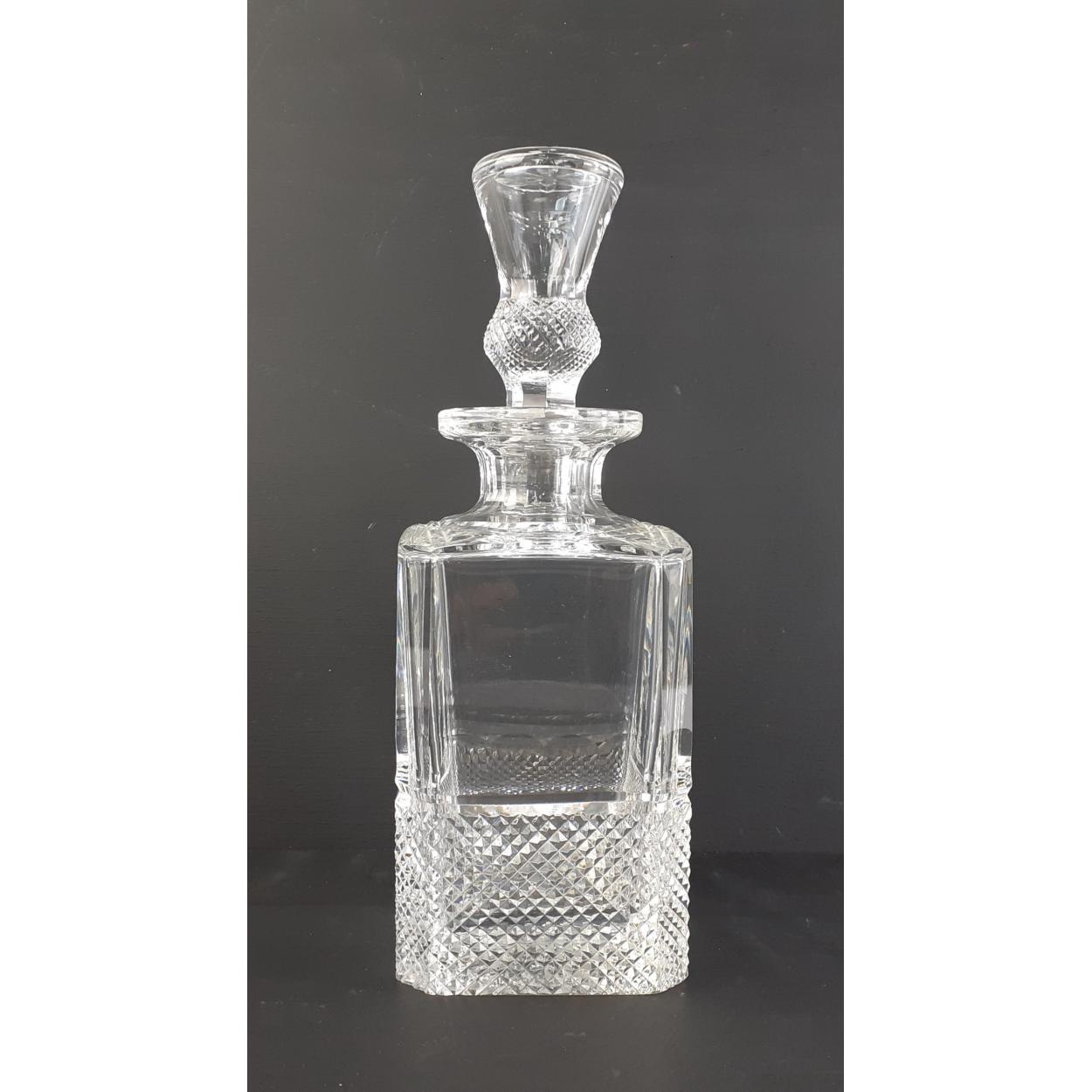 A square crystal decanter with thistle shaped stopper. Stands 28cm approx