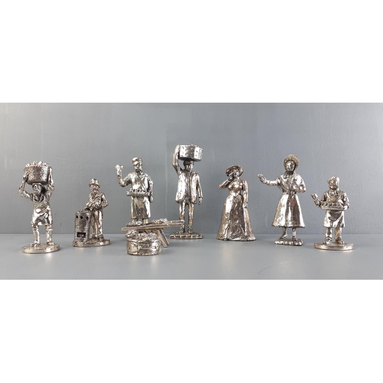 ROYAL HAMPSHIRE pewter figures. Seven beautiful pieces to include street vendors such as fruit seller, pie seller, chestnut seller etc. All in nice condition.