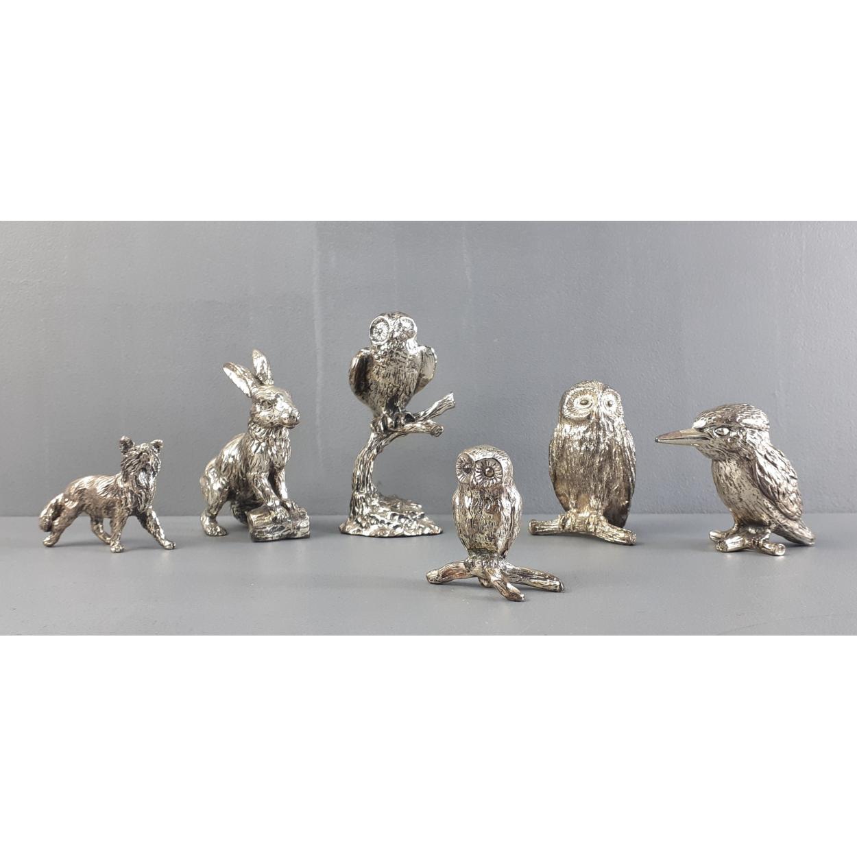 ROYAL HAMPSHIRE pewter figures. A great collection of animal figures - hare, kingfisher, owls etc.