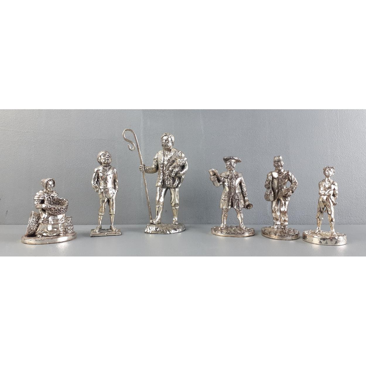 ROYAL HAMPSHIRE pewter figures. Six beautiful pieces to include shepherd, town crier, mail man etc. All in nice condition. The shepherd stands 10cm approx.