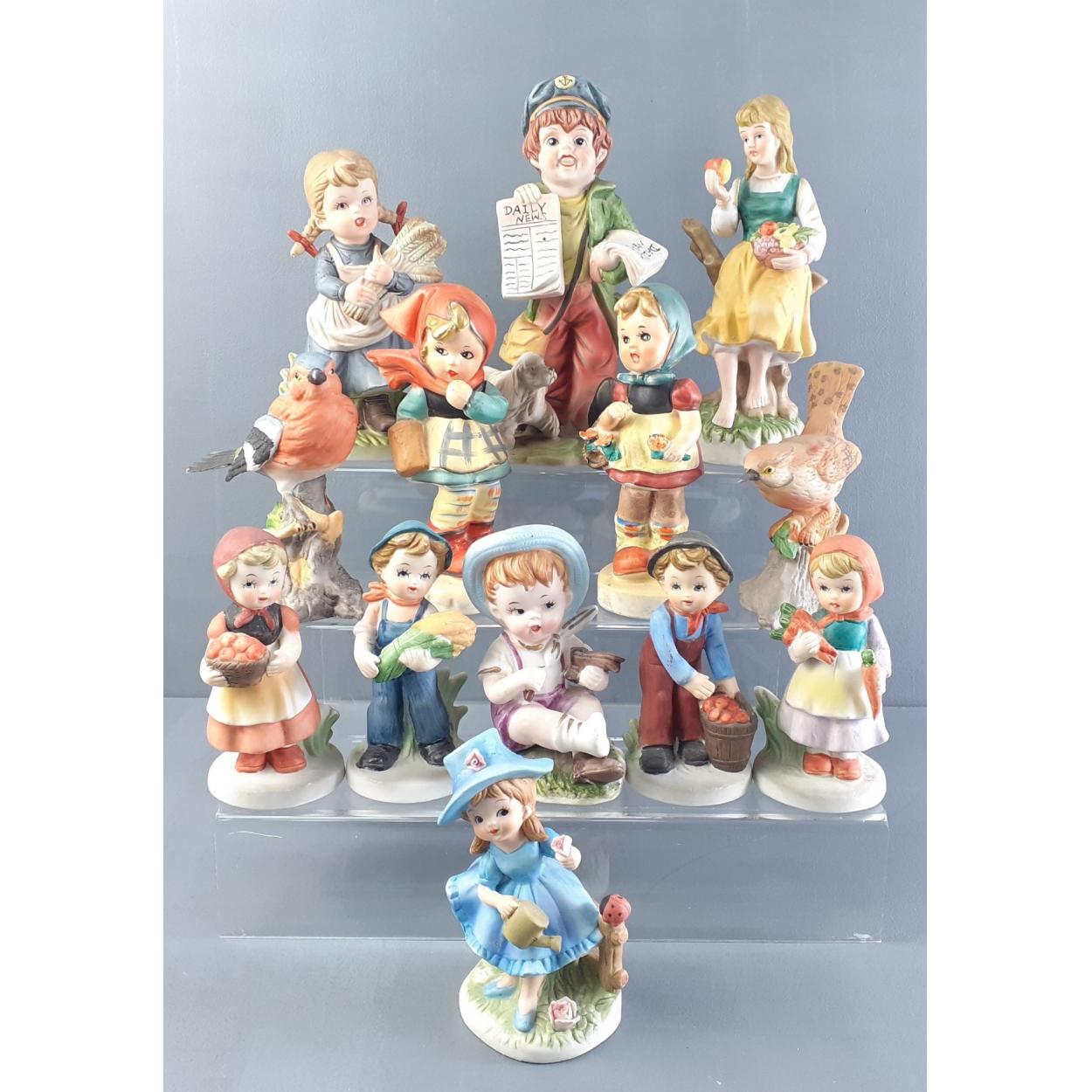A collection of GOEBLER style figures. Some unmarked some marked foreign.