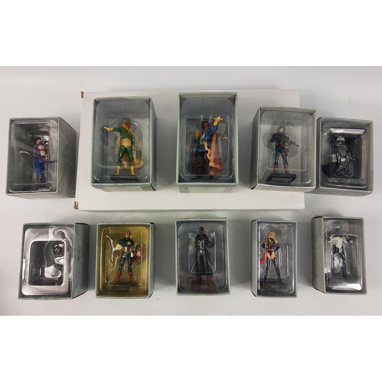 Boxed EAGLEMOSS die-cast models from the MARVEL UNIVERSE to include Ironman, Red Skull, Winter Soldier, Black Panther, Dr Strange, Vision, Hawkeye, Captain America, Captain Marvel, Ms. Marvel, with a plinth for 10 figurines