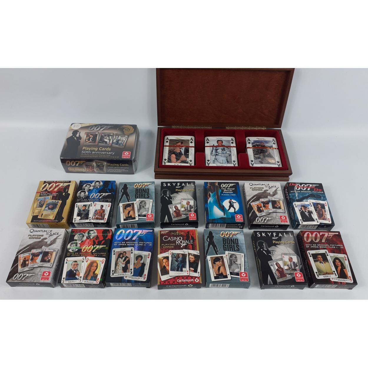 JAMES BOND - CORGI Casino Royale tin (CC99193) with an Aston Martin DB5 and DBS set (scale 1:36) and official Casino Royale playing cards, boxed unopened, plus a large collection of 007 SPY CARDS