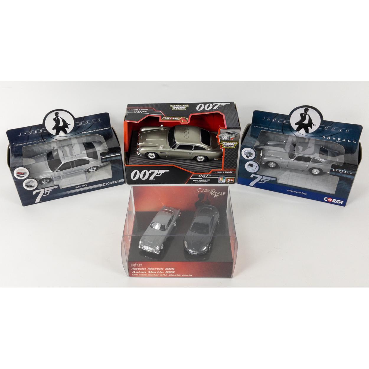 JAMES BOND - CORGI collectable diecast model cars to include Skyfall Aston Martin DB5 (CC04310), and Tomorrow Never Dies (CC05104), a TOY STATE Casino Royale Aston Martin DB5 cars with lights & sounds and MARKS & SPENCERS twin pack Casino Royale Aston Martin DB5s