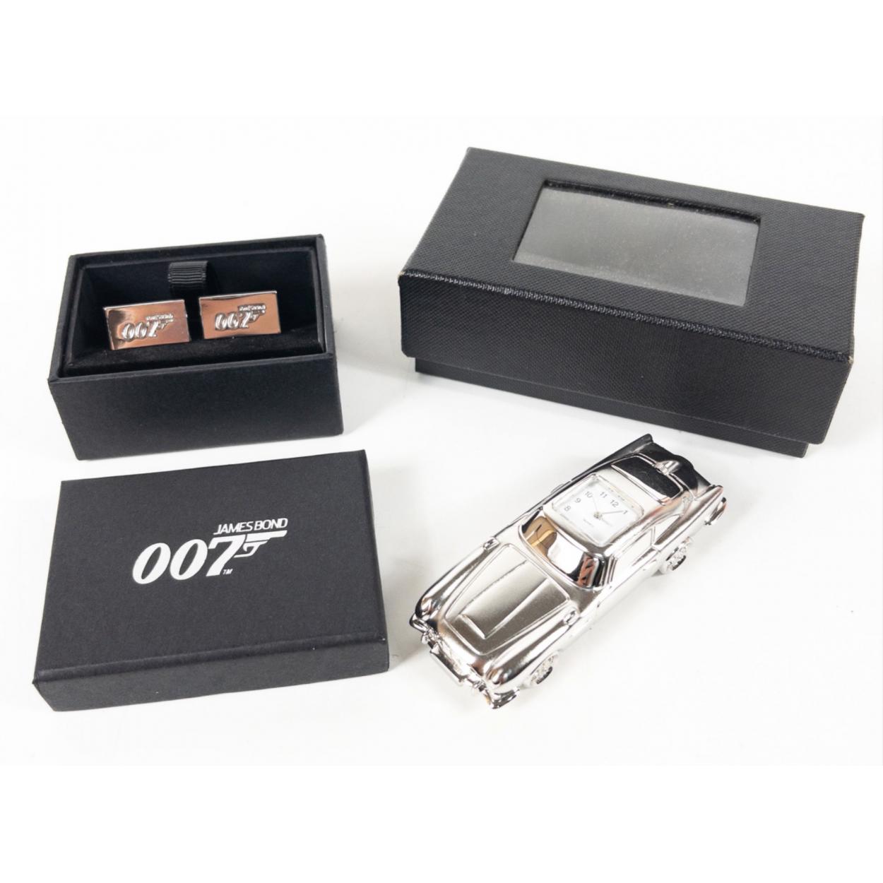JAMES BOND OO7 - A super little mixed lot of loose James Bond themed diecast models. Includes original Made in Great Britain Corgi DB5 in Gold with baddie in place (playworn). Most others are later China made models. Also includes a number of bond themed cuff links and tie pins.