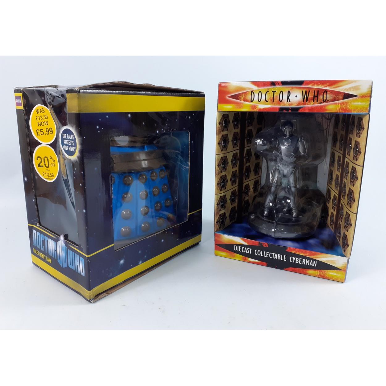 DOCTOR WHO - a boxed blue Dalek money bank (slight damage to box) and a boxed diecast collectable Cyberman