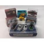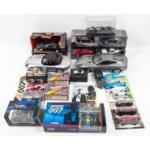 JAMES BOND 007 Diecast vehicle assorted lot. To include: 1985 Matchbox View to a Kill boxed models x2, GE FABRI models x4, HERPA BMW trio, TOY STATE driving action Aston Martin, 2004 Corgi Classics group set, MINICHAMPS Pauls Model Art green Aston Martin, HOTWHEELS carded models x4, Lare BEANSTALK Aston Martin Vanquish, Large KYOSHA BMW (this model only has some light damage. Other small pieces included.