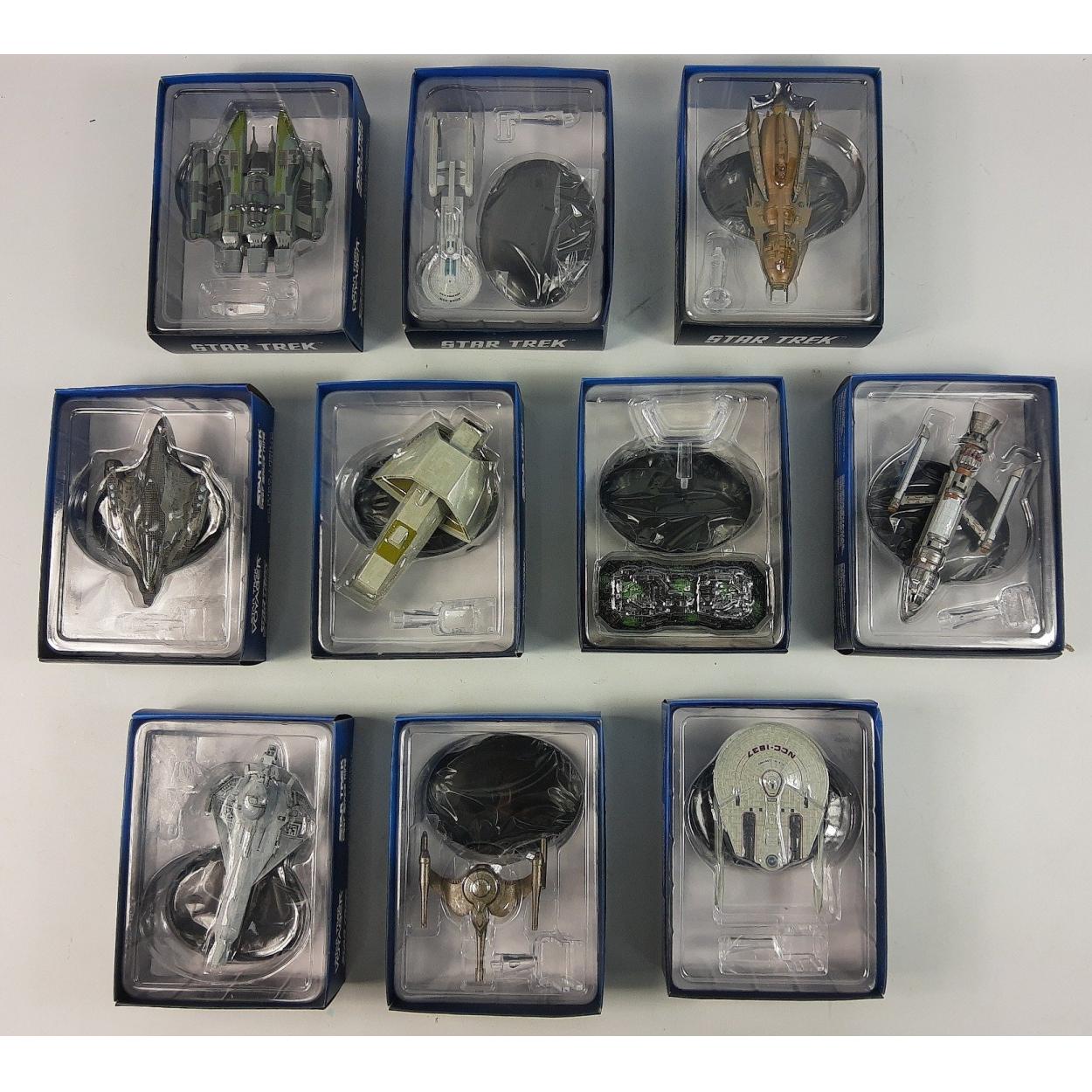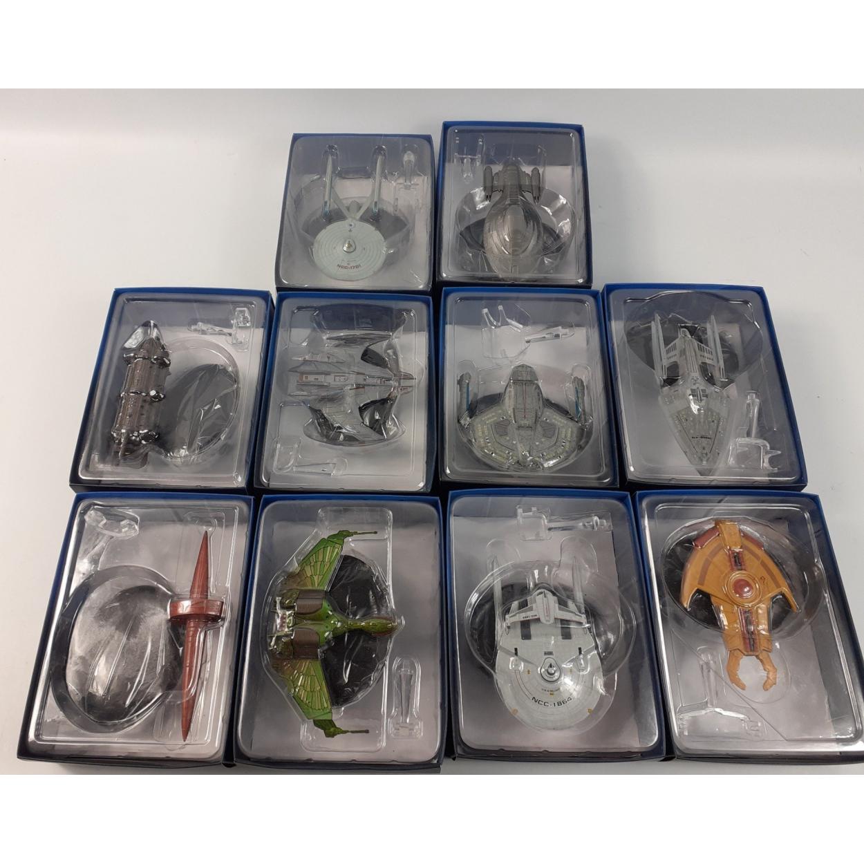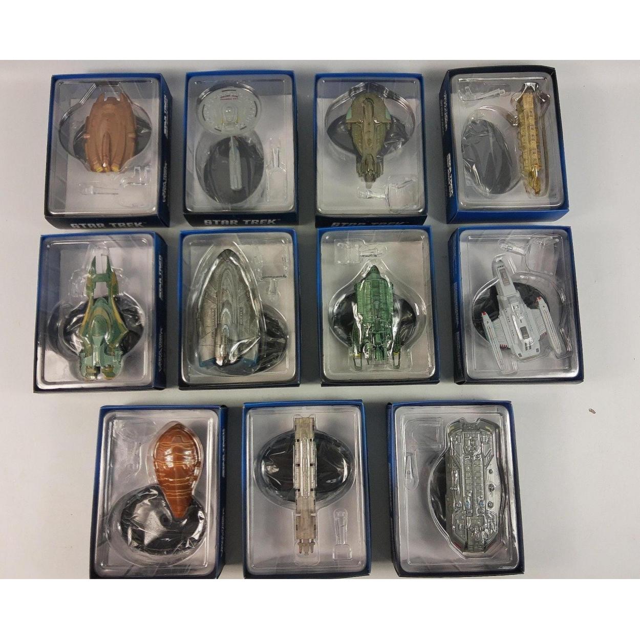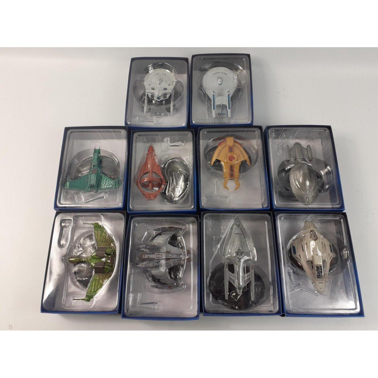 STAR TREK collectable die-cast models by EAGLEMOSS to include D'Kyr (5474-A/B), USS Voyager (Armored) (7660-A/B), Delta Flyer (9657-A/A), Jem'Hadar Attack Cruiser (3247-A/B), Klingon Bird-Of-Prey (9662-A/D), USS Reliant NCC-1864 (1956-A/B), Klingon Attack Ship (1511-A/B), USS Prometheus NX-59650 (7373-A/I), USS Stargazer NCC-2893 (8565-A/C), Hideki Class (3551-A/C),