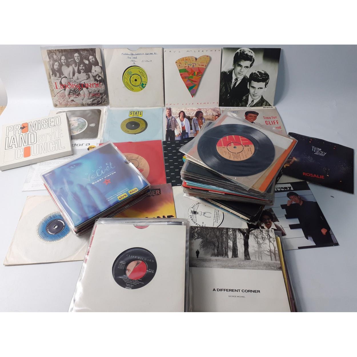 A collection of 18 ELTON JOHN 7" singles SORRY SEEMS TO BE THE HARDEST WORD from 1976, CRAZY WATER from 1976, 1972 DANIEL, 1976 DON'T GO BREAKING MY HEART, VICTIM OF LOVE from 1979, 1978 SONG FOR GUY, 1980 LITTLE JEANIE , HEARTACHE ALL OVER THE WORLD from1986, KIKI & ELTON Loving you is Sweeter Than Ever from 1981, ARETHA FRANKLIN & ELTON Through the Storm, I'M STILL STANDING limited edition, PRINCESS FROM 1982, BLUE EYES FROM 1982, 1990 YOU GOTTA LOVE SOMEONE, TOWN OF PLENTY all in good condition also 3 other singles with minor scratching CANDLE IN THE WIND, ROCKET MAN and EMPTY GARDEN