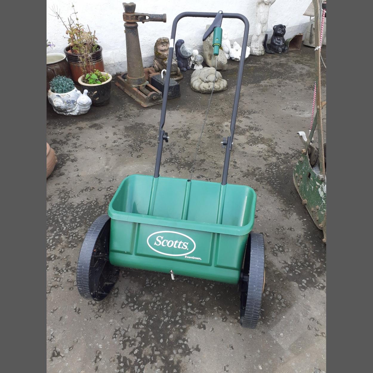 A SCOTTS Evergreen branded lawnseed/or pellet seed feeder machine