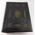 An impressive large leather bound family bible with some lovely coloured illustrations. Some internal repairs.