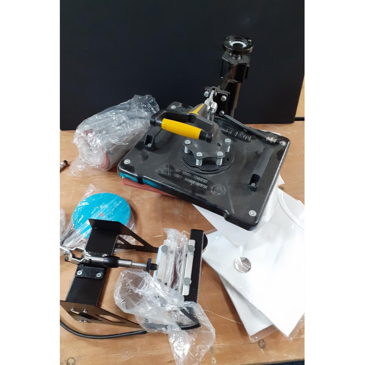 Print your own T-shirts etc with a HEAT PRESS machine model no. DGN, comes with a supply of t-shirts and accessories including for printing mugs
