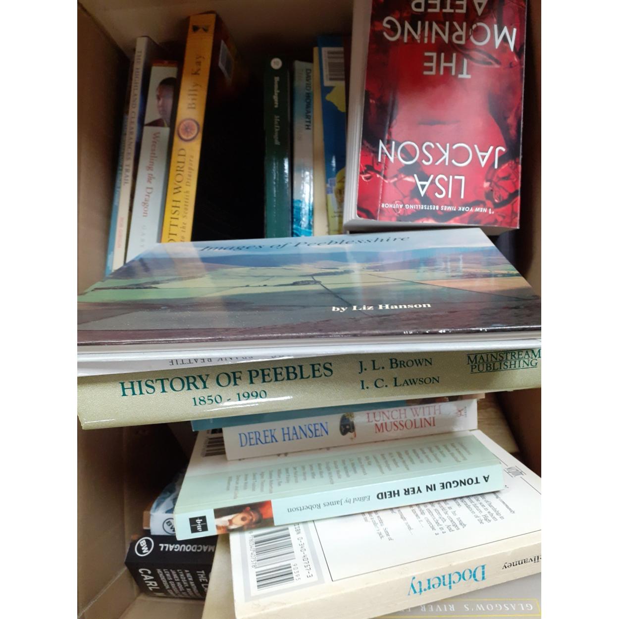 A large box of books many of SCOTTISH historical interest, including Scotland: The Story of a Nation by MAGNUS MAGNUSSON, The Auld Inns of Scotland by DANE LOVE, Scottish Coins: A history of Small Change in Scotland by NICHOLAS HOLMES and many more