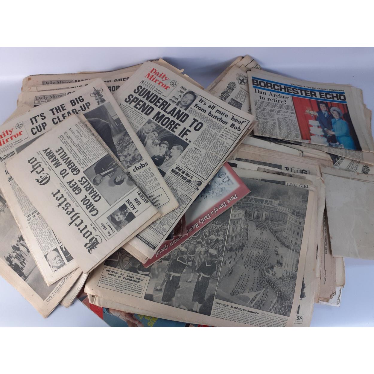 A collection of older newspapers and magazines celebrating Royal Events. From Edward VII to Charles Investiture as Prince of Wales and lots lots more. Includes some interesting souvenir THE ARCHERS papers. A nice lot!