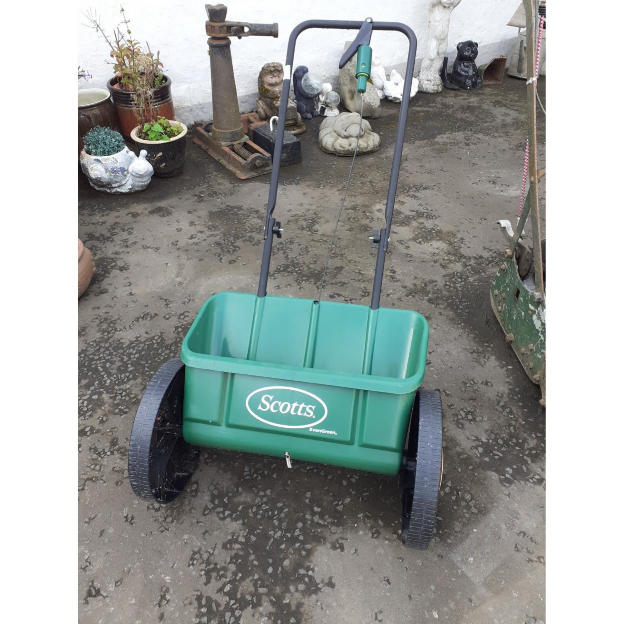 A SCOTTS Evergreen branded lawnseed/or pellet seed feeder machine