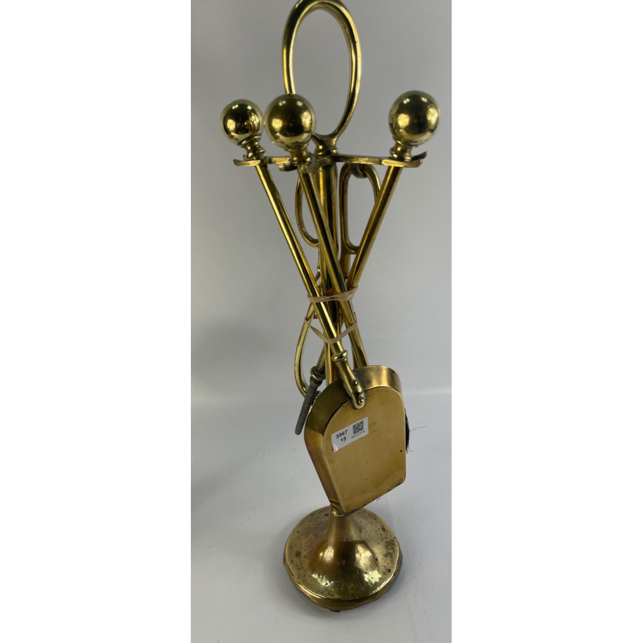 VINTAGE - A BIJOU 4 piece brass companion set standing 39cm high