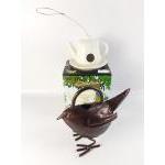 Garden Ornament. An attractive reconstituted stone model of an old lady sitting on a bench watching squirrels. A nice model with weathering and moss. Stands 33cm tall.