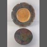 A large tactile art pottery dish stamped MARGARET HARDING to base. 35cm diameter and one other small dish.
