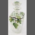 A vintage hand painted glass decanter with grape and vine hand painted design. Stands 21cm tall and in great condition.