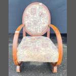 A VINTAGE fabric upholstered bentwood arm low armchair