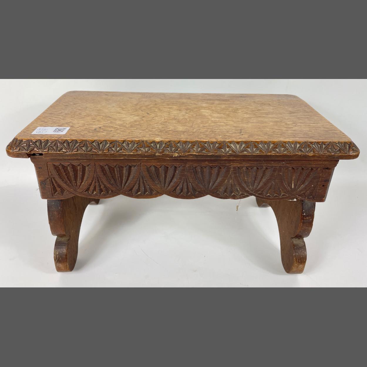 A nice wee fabric covered footstool - dimensions 18" x 12" approx