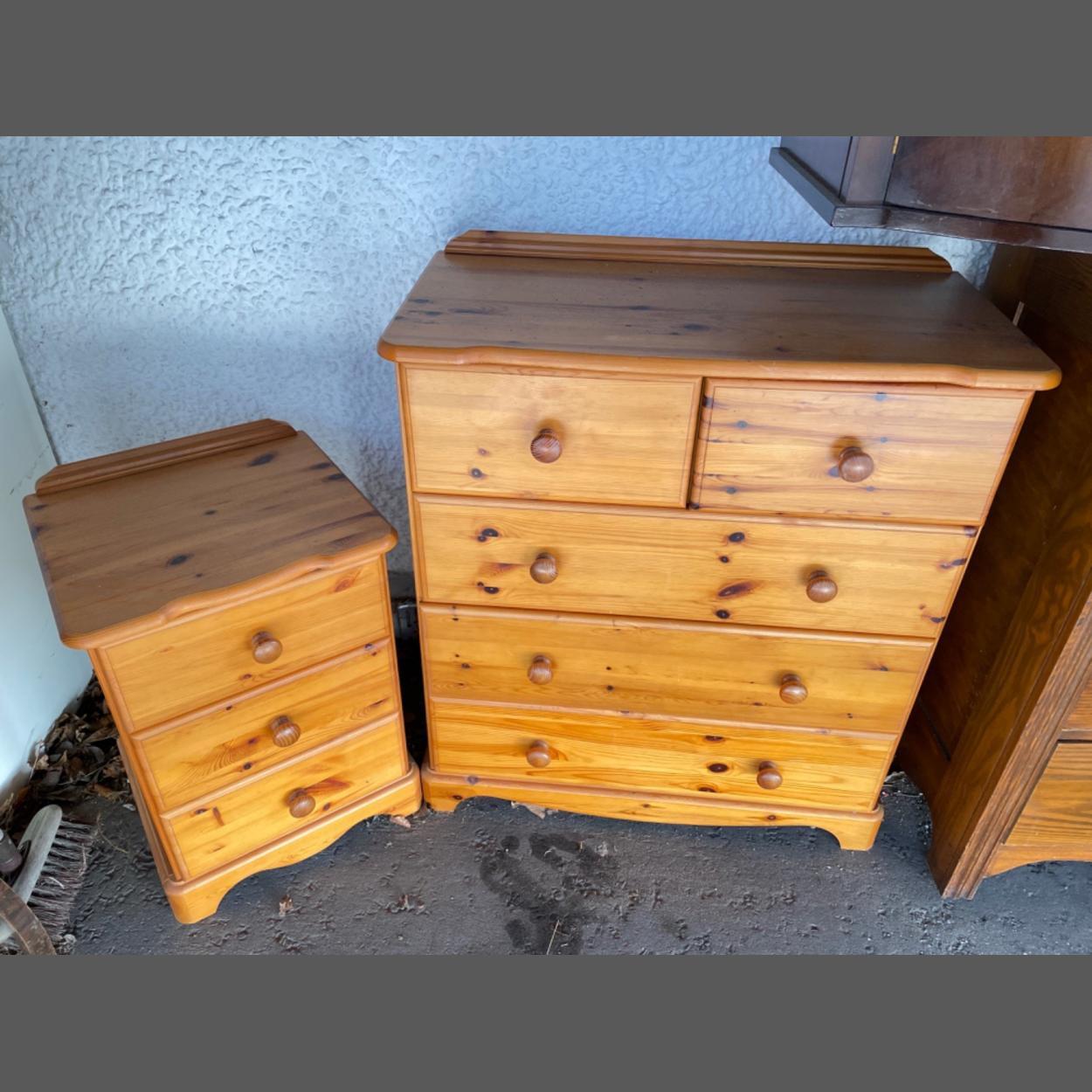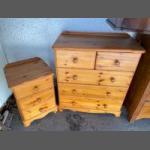 TWO PIECES of pine bedroom furniture to include a three drawer bedside cabinet - dimensions height 69cm x width 43cm x depth 49cm and also a two over three chest of drawers dimensions height 68cm x depth 40cm x width 80cm