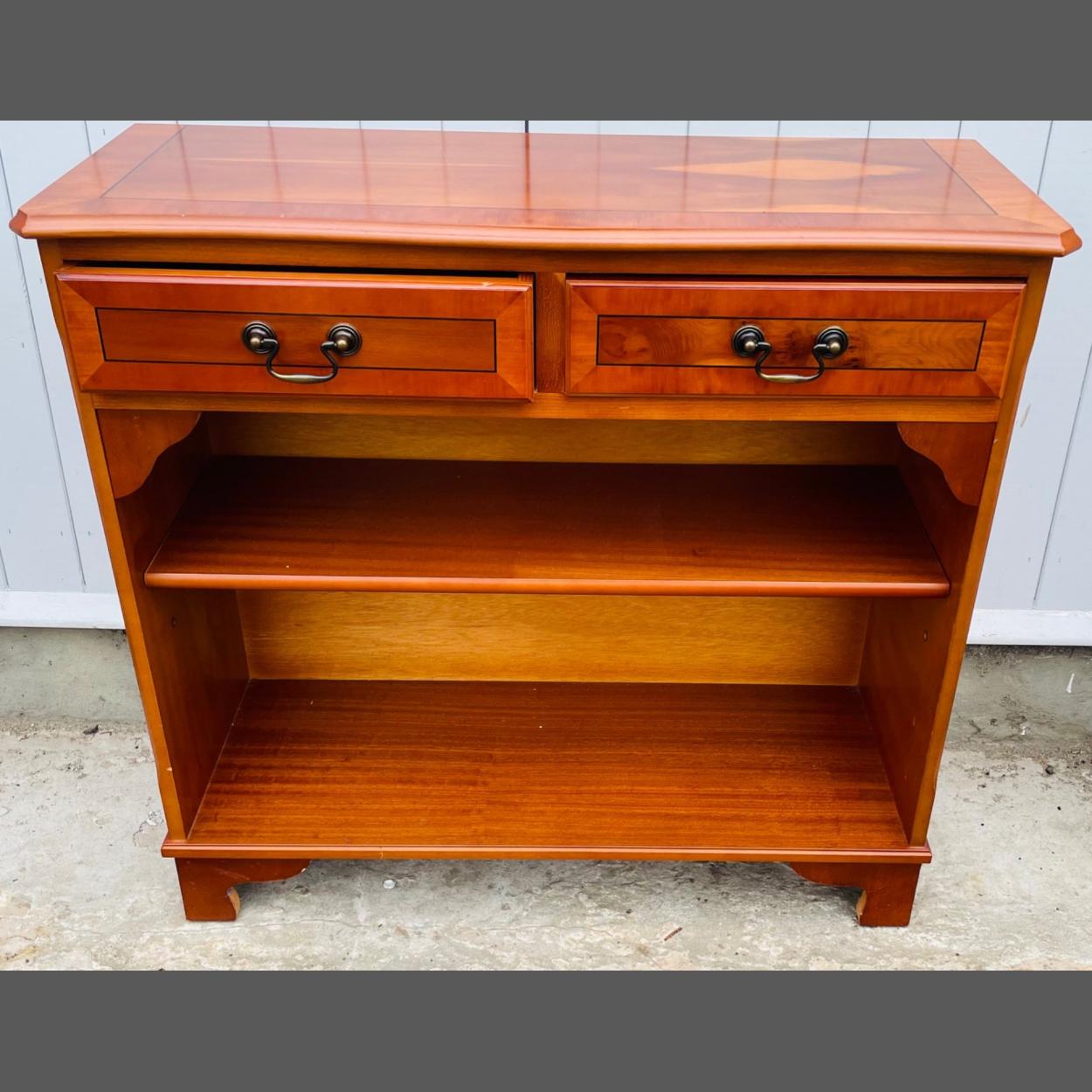Theo shelf bookcase with two drawers in Yew finish - dimensions 77cm x depth 29cm x height 73cm approx