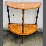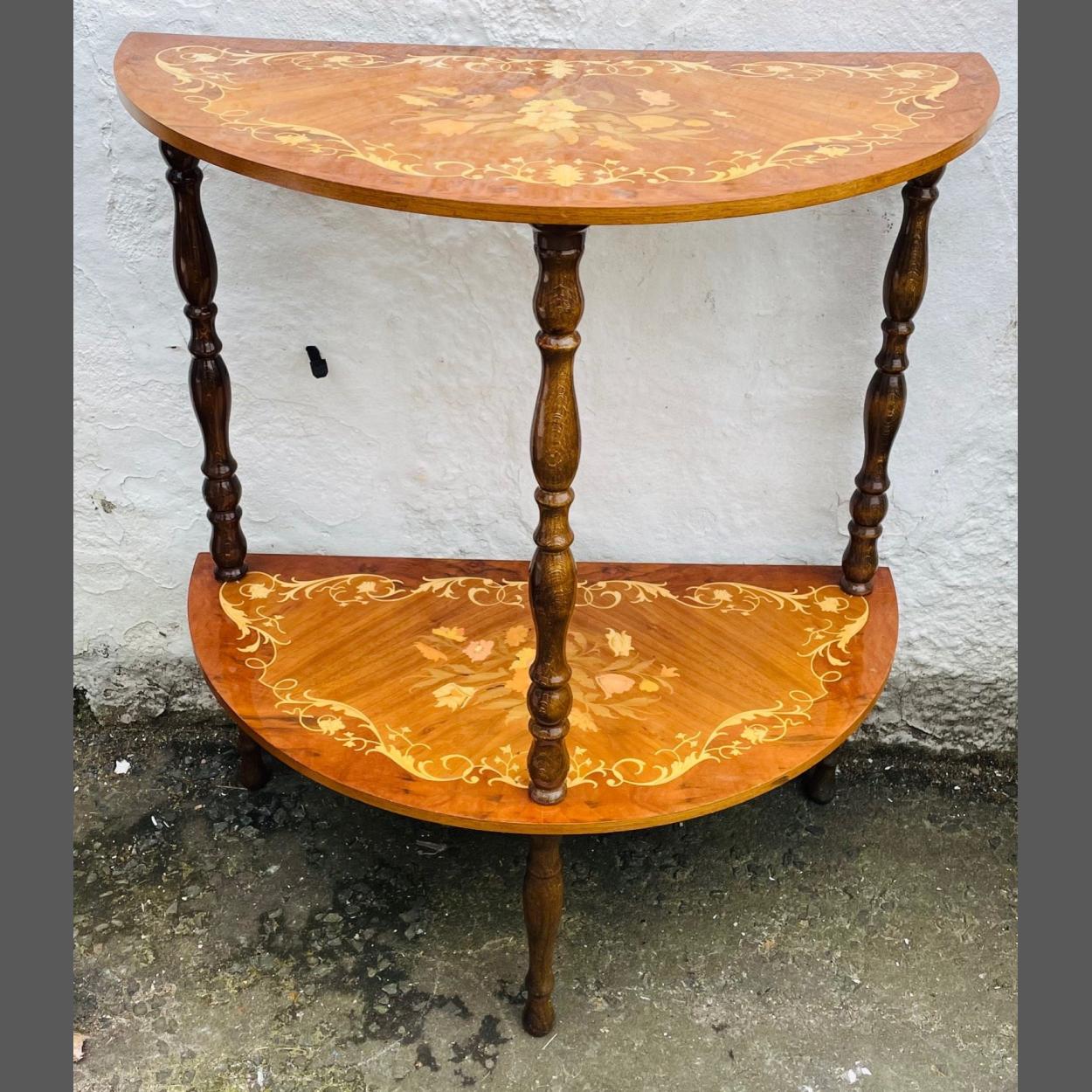 A nice DEMI-LUNE inlaid marquetry table with bottom shelf - dimensions width 67cm x depth 36cm x 75cm height