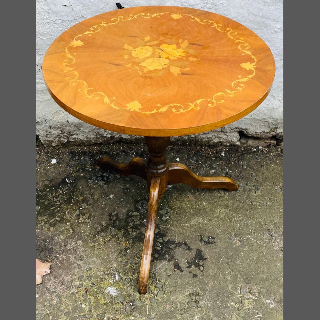 A nice quality circular marquetry side table - dimensions 43cm x 46cm height