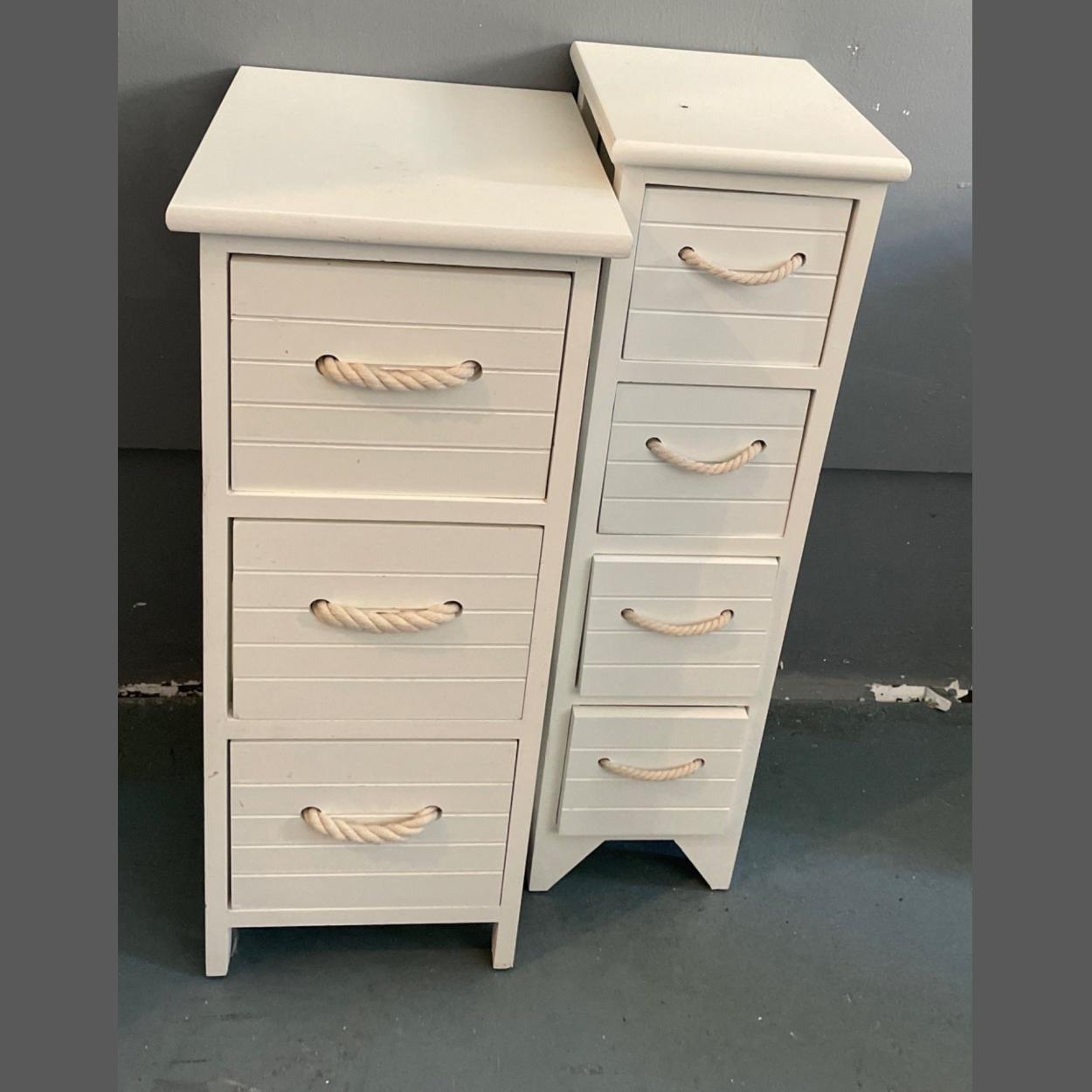 Two three drawer small slimline storage drawer units - larger unit dimension height 82cm x depth 32cm x width 27cm