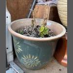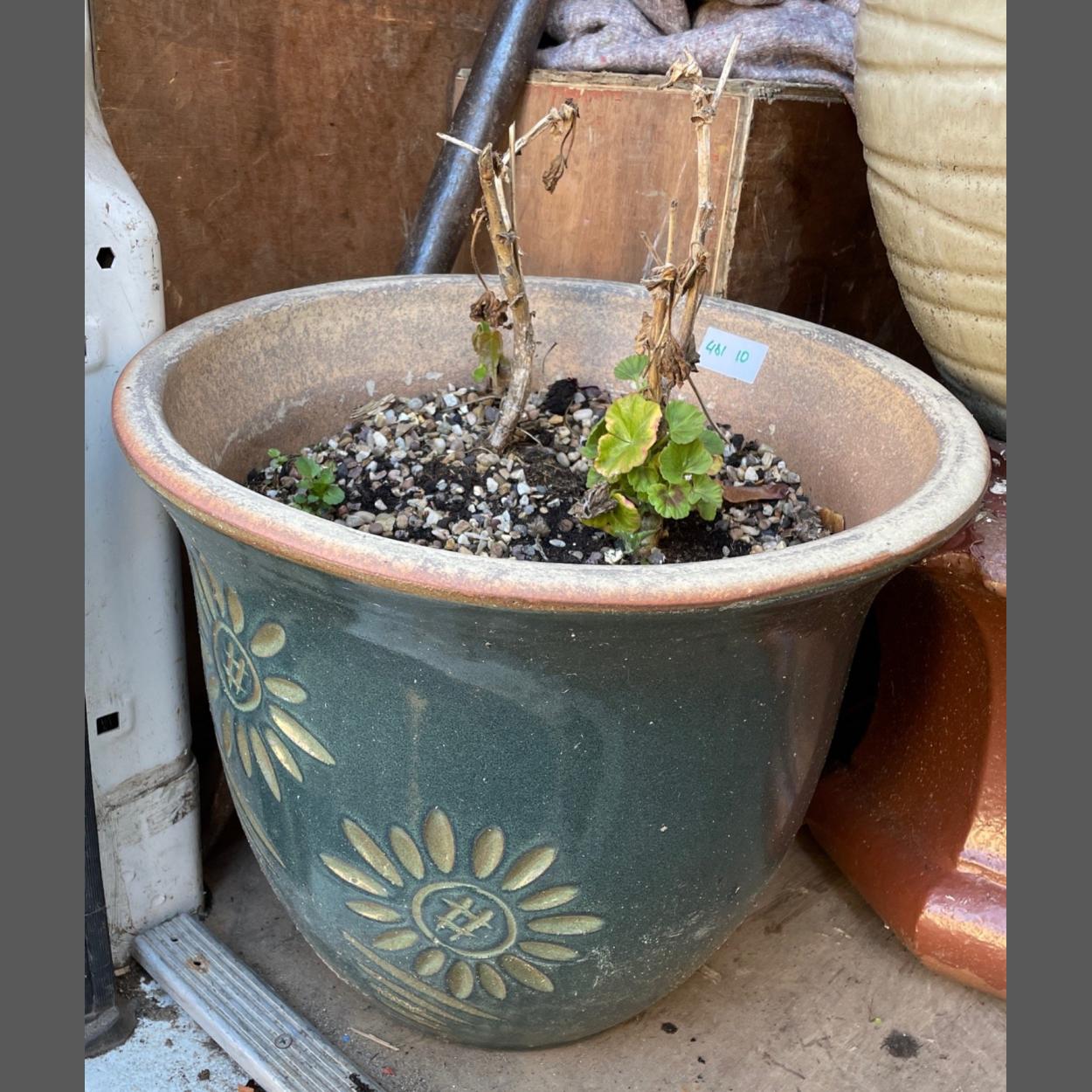 A large garden ceramic pot with planting - height 33cm x diameter 39cm