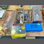 A huge selection of vintage and newer tools including a plastic tool-box full of good clean “King Dick” Spanners – wide range of sizes, a BOSCH electric Jigsaw – working with instructions & screwdriver, a BRAND NEW SEALED – Bosch 25 piece Screwdriver BIT set, a metal tool-box full of – adjustable spanners, screwdrivers, old grease guns, screwdrivers, Allen keys, spanners, vintage socket spanners with plugs etc, a wooden box full of Hammers, Hatchet, Screwdrivers, spanners, pliers, nips, etc, a wooden box with hatchet, new silicone gun, plastering tools etc, 5 vintage woodworking hand-saws – needing cleaned up