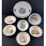 BUNNYKINS - a lot of beautiful fun pieces to include three deep bowls, and three others along with a 24cm plate. All in excellent condition apart from the plate which has minor glazing cracks.