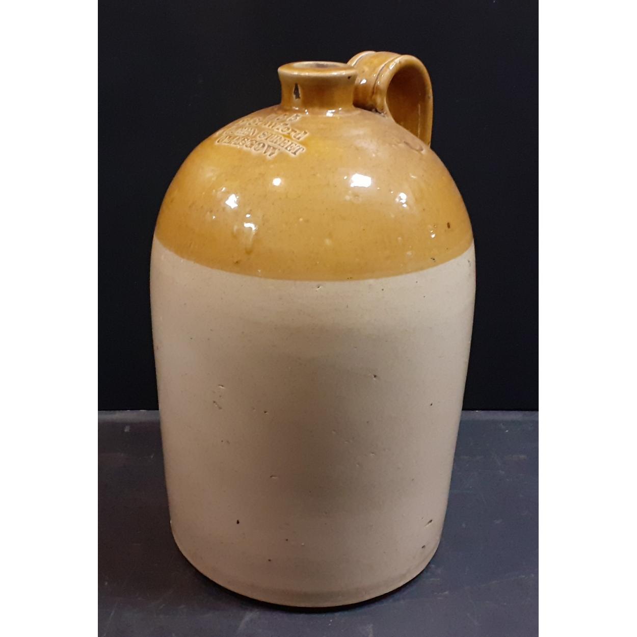A super large stoneware flagon from D Crawford, 81 Queen Street, Glasgow. Stands 46cm high with no chips or damage