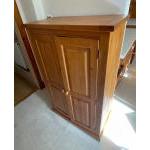 A sturdy light oak style 3 shelf floor standing cupboard - 5ft tall x 2.5ft width approx