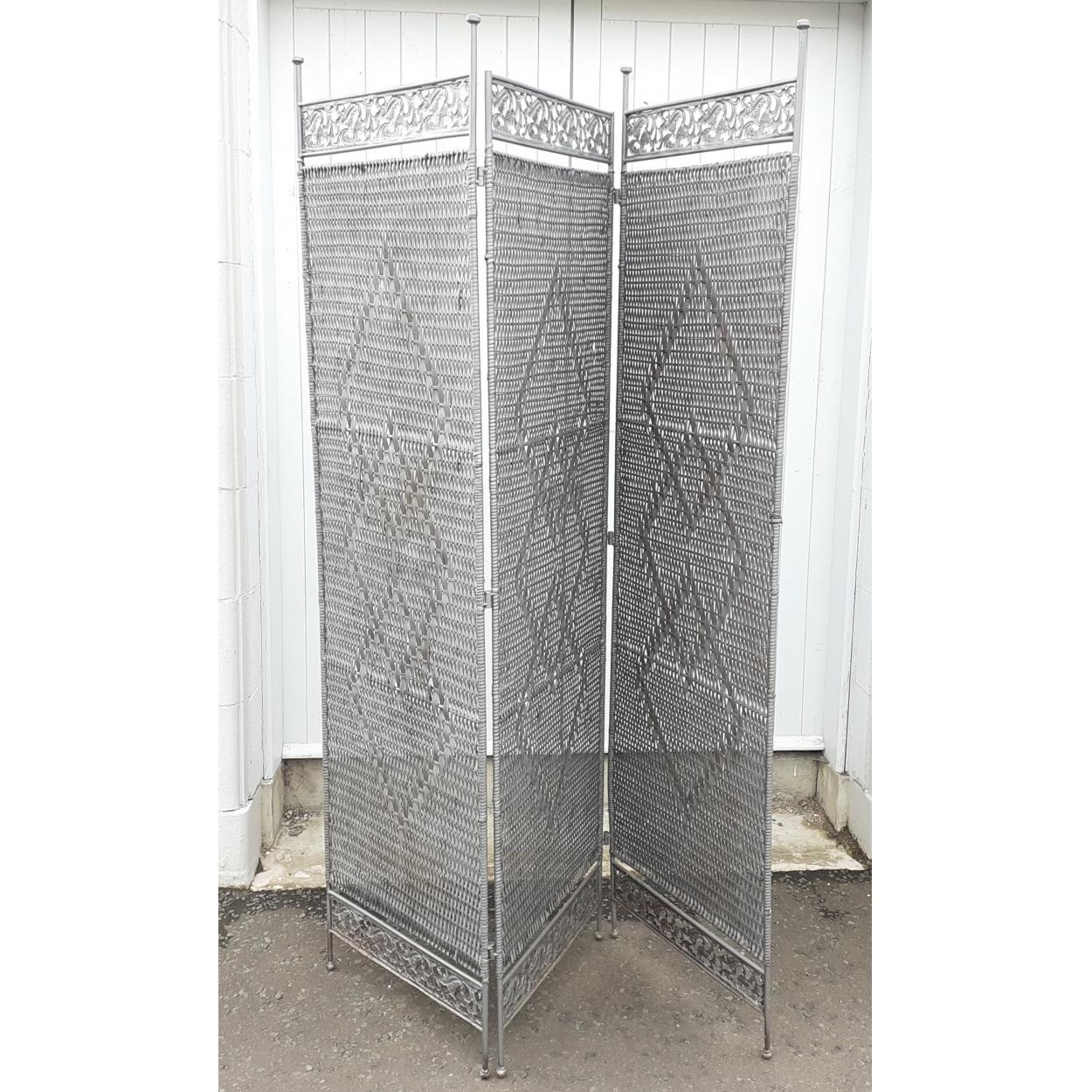A metal framed rattan tri-fold room divider H180cm, each panel 50cm wide