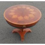 A circular topped drum style table with nice marquetry top W71 x H67cm approx
