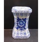 A blue and white ceramic plant stand 40cm high x 25 x 25cm approx. No damage