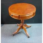A drum table with claw feet and 2 drawers H59 x D50cm approx.