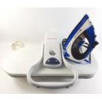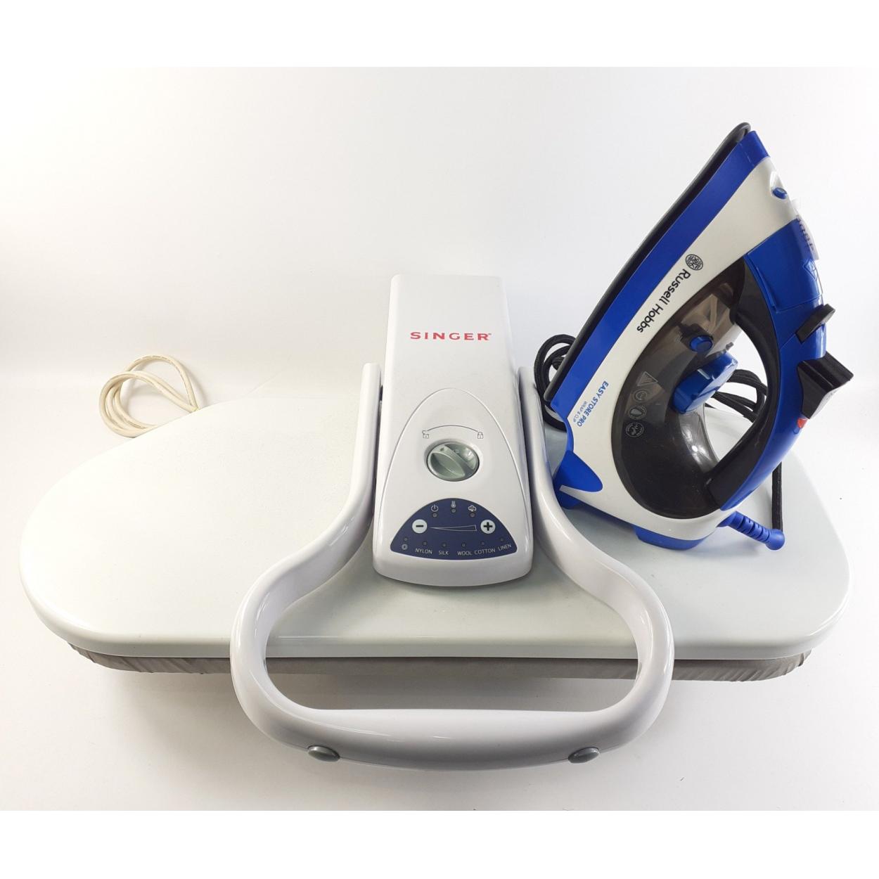 An electric SINGER table press with a RUSSELL HOBBS steam iron
