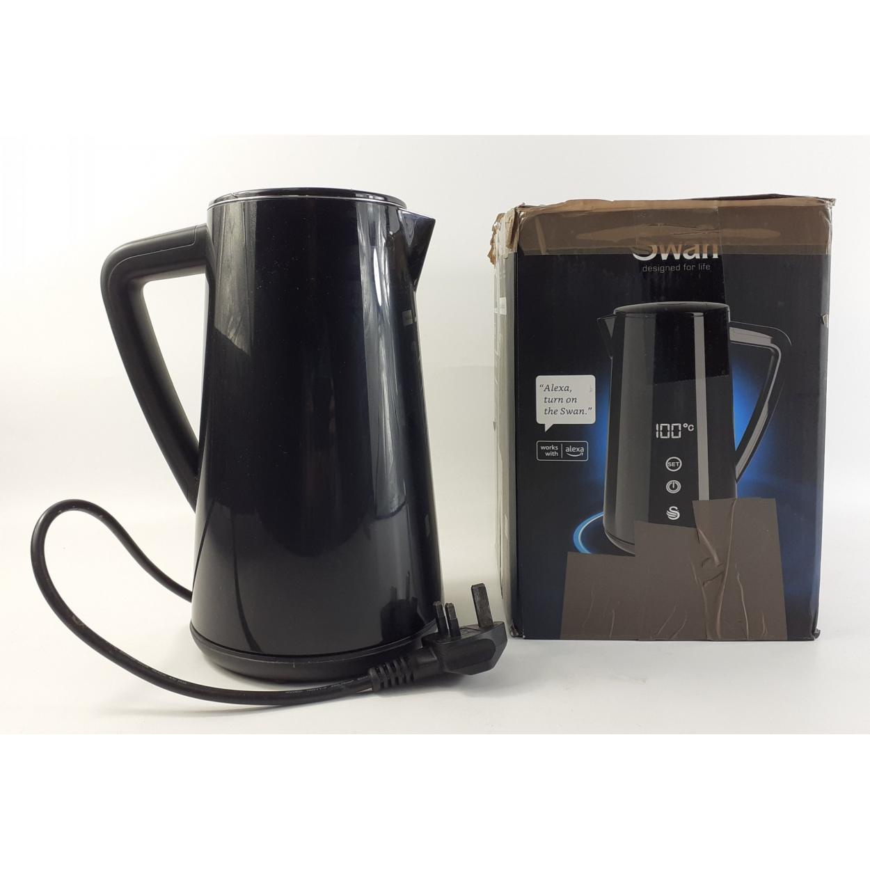 A preloved Black Alexa Compatible Swan 1.5 litre Digital Kettle.
