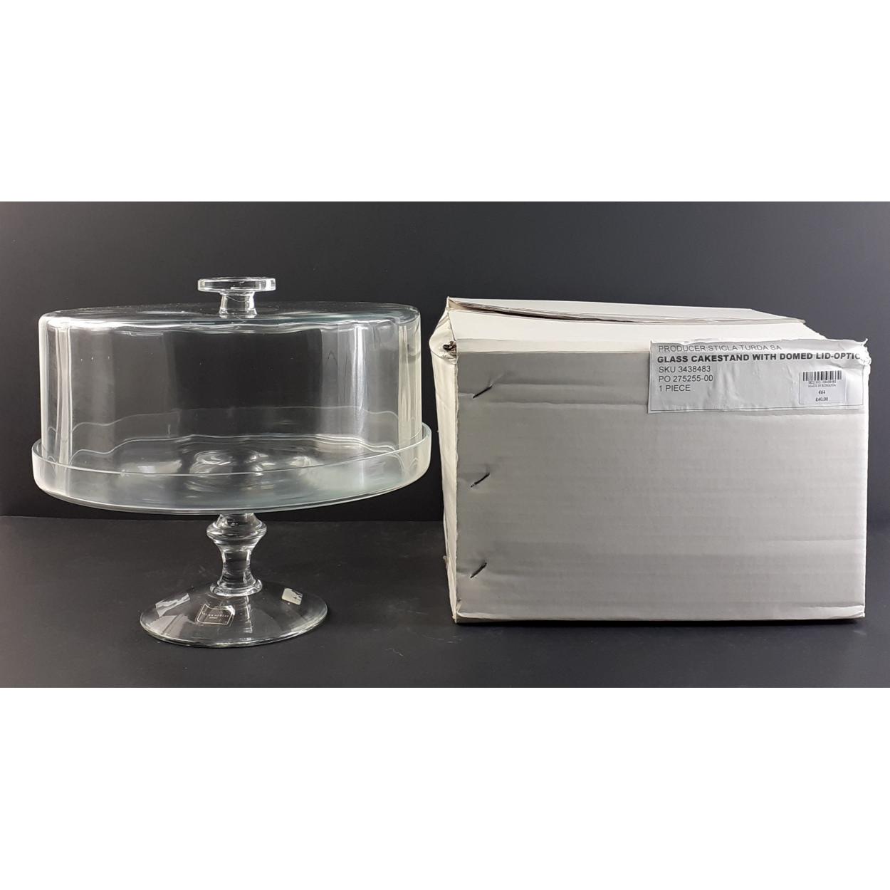 Two boxed, unused LAURA ASHLEY glass cakestands with domed lids (PO275256-00). RRP £40.00