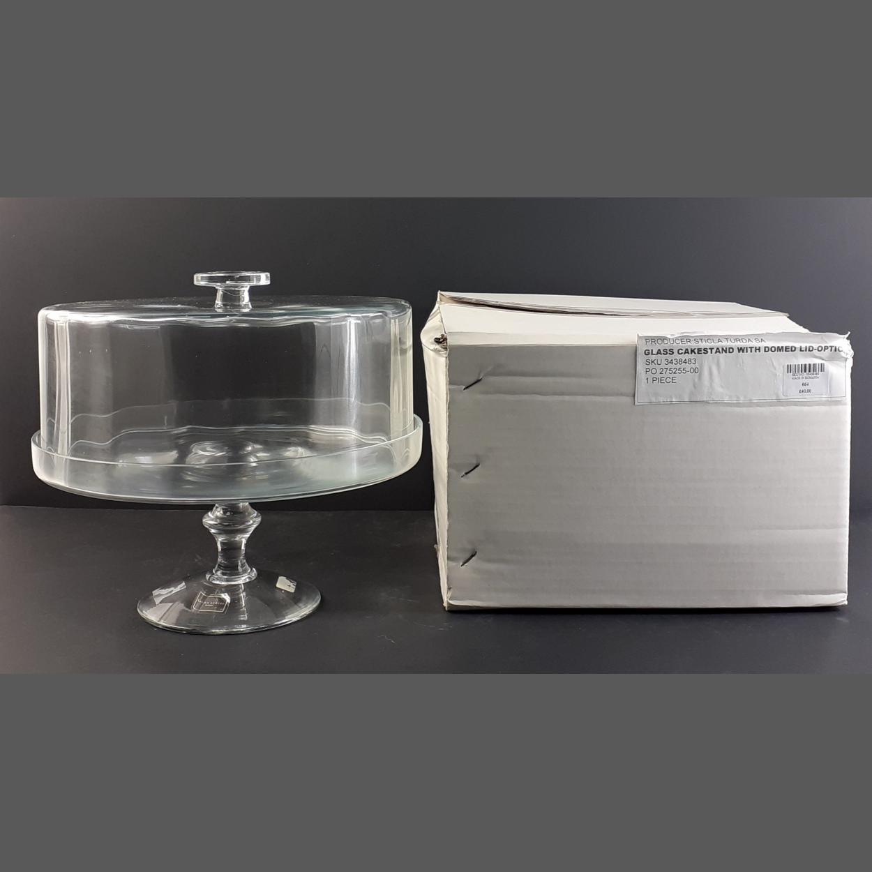 Two boxed, unused LAURA ASHLEY glass cakestands with domed lids (PO275256-00). RRP £40.00