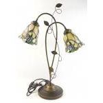A lovely TIFFANY style two branch table lamp with floral metal stems and two lovely shades with glass beading. 70cm high approx.