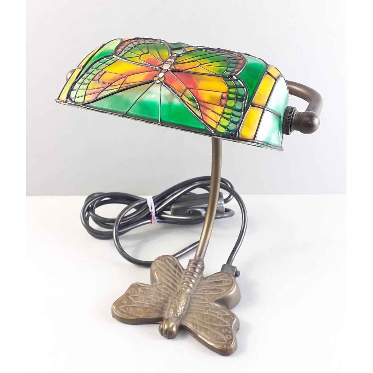 A gorgeous modern Tiffany Style brass desk lamp. Approx 23cm high with wonderful butterfly designs. Plug removed