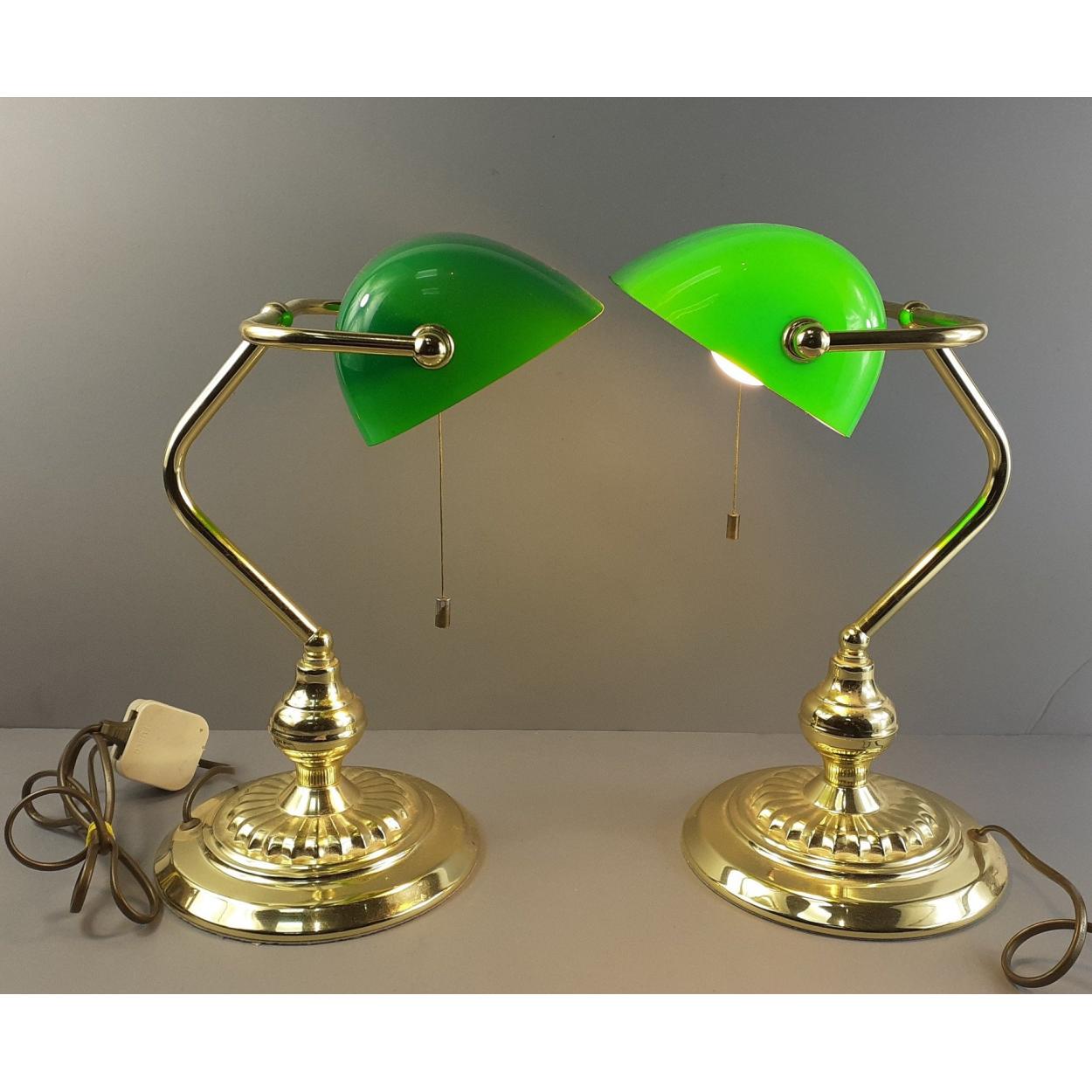 A lovely brass glass lamp inspired by the iconic 'Lily Lamp' from 1905, created by the Tiffany Studio. Light coloured with three shades rather than the more usual two, 40cm tall approx and in lovely condition.